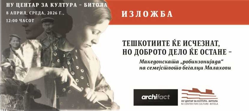 Во организација на НУ Центар за култура – Битола и Друштвото за архитектура, дизајн и култура – Архифакт – Скопје, на 8 април 2026 год., среда, во 12.00 часот, во изложбениот салон на Центарот за култура, ќе биде отворена изложбата „Тешкотиите ќе исчезнат, но доброто дело ќе остане – Македонската „робинзонијада“ на семејството бегалци Малахови“. Автори на изложбата и каталогот се: д-р Јасмина Дамјановска, проф. д-р Ленина Жила, Љубица Велкова и Јасминка Намичева.